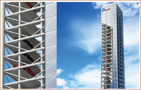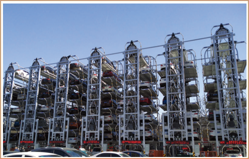 垂直升降類(lèi)機(jī)械式停車(chē)設(shè)備亦可稱(chēng)之為“塔庫(kù)”,主要通過(guò)升降裝置的升降和裝在升降裝置上的智能搬運(yùn)器將車(chē)輛搬運(yùn)至固定車(chē)位上,從而實(shí)現(xiàn)車(chē)輛的存取。